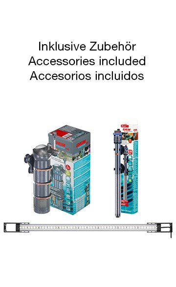 Ob 126, 150, 180 oder 240 Liter Fassungsvermögen, alles ist perfekt aufeinander abgestimmt bei diesem „All-Inclusive-Programm“ aus Aquarium mit EHEIM LED-Beleuchtung, Unterschrank, Filter, Heizer und biologischen Filtermedien. Sie müssen sich nur noch um Fische und Pflanzen kümmern.