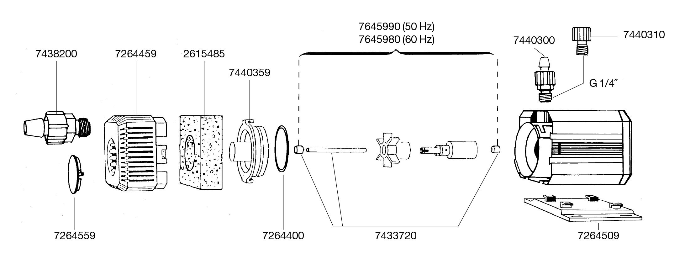 Es gibt 5 Modelle mit Leistungsstufen von 300 bis 3400 l/h, jeweils wahlweise mit 1,5 m (Innenbereich) oder 10 m (Außenbereich) Kabellänge. Außerdem eine kleine, flexible Hobbypumpe mit 270 l/h Pumpenleistung (siehe unten).