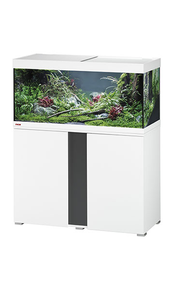 Whether 126, 150, 180 or 240 liters volume, all is perfectly coordinated for this „all inclusive program“ consisting of aquarium with –EHEIM LED lighting, cabinet, filter, heater and biological filter media. You only have to think about fish and plants.