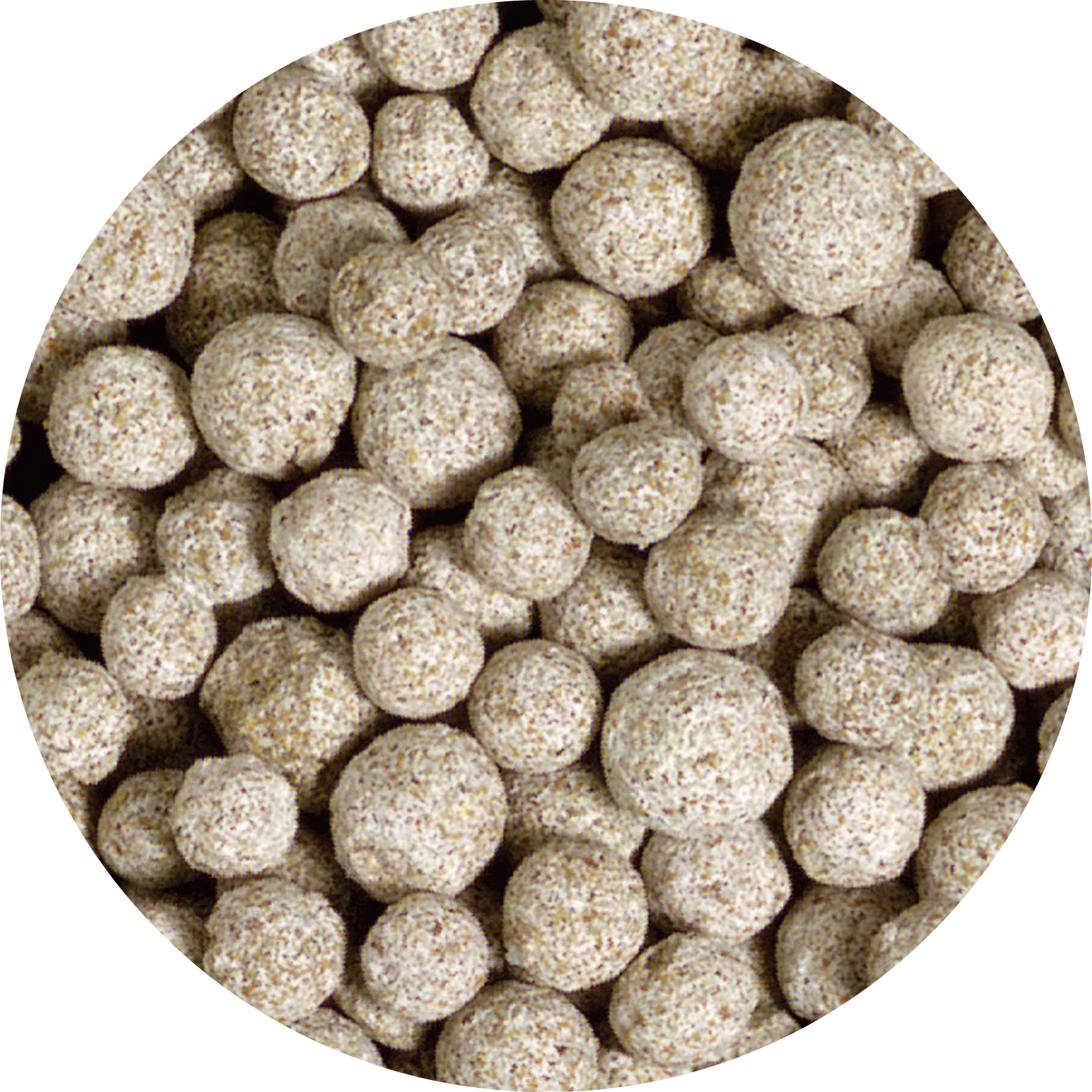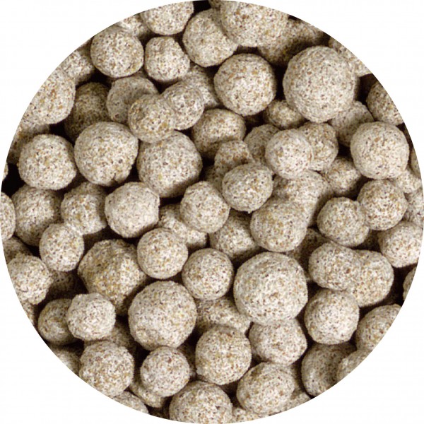 SUBSTRATpro consists of pearl-shaped sintered glass. The spherical shape gives a high bulk density. Thus the whole of the volume in the filter (filter baskets or modules) can be utilised. Also the optimum surface of the beads provides intensive colonisation of the important purification bacteria.