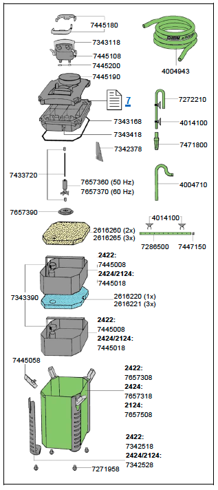 Additionally, this sturdy basic filter offers special advantages: for instance, a complete hose adapter unit with integrated shut-off taps, individually removable filter baskets with fold-away handles, very low energy consumption, very quiet running due to ceramic components and more besides.